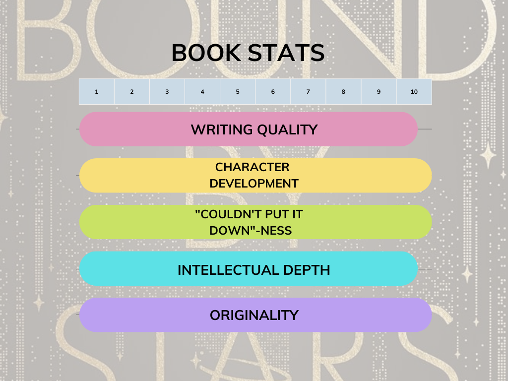 For fans of space operas, Titanic retellings, star-crossed lovers, political intrigue, and strong women in STEM, Bound by Stars is a must-read. It is a story of love tested by power, class, and destiny, and it delivers on every front.